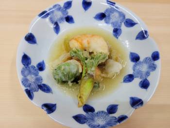 蕗の薹の胡麻豆腐とたらの芽の天麩羅