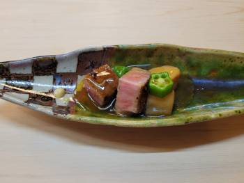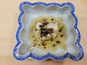 鱧の落し、メイタ鰈、鮑のお造り